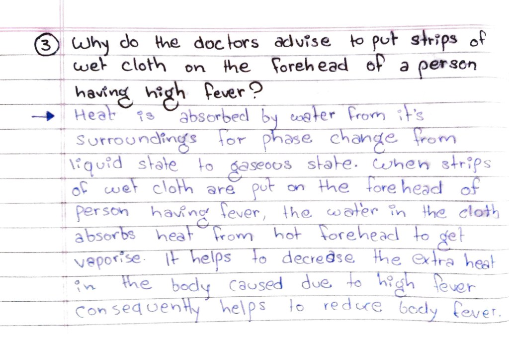 Q3. Why do the doctors advise to put strips of wet cloth on the forehead of a person having high fever?