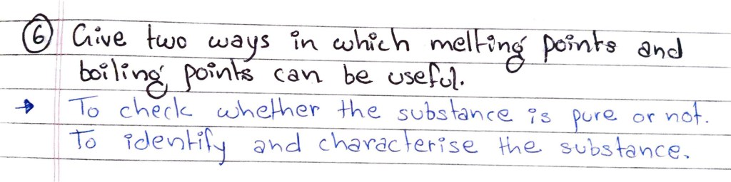 Q6. Give two ways in which melting points and boiling points can be useful.