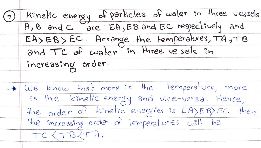 Q7. Kinetice energy of particles of water in three vessels A, B and C